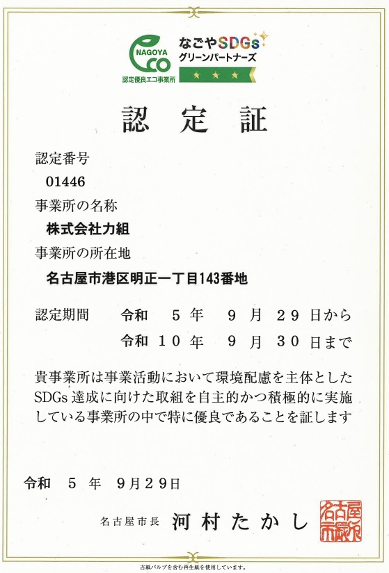 なごやSDGsグリーンパートナーズ 認定優良エコ事業所に認定されました✨