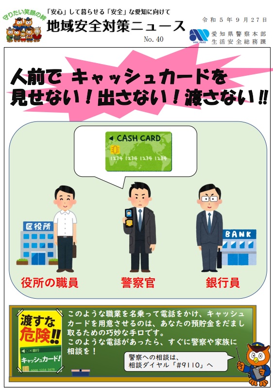 キャッシュカードを狙った特殊詐欺の増加を受け、新キャッチフレーズ