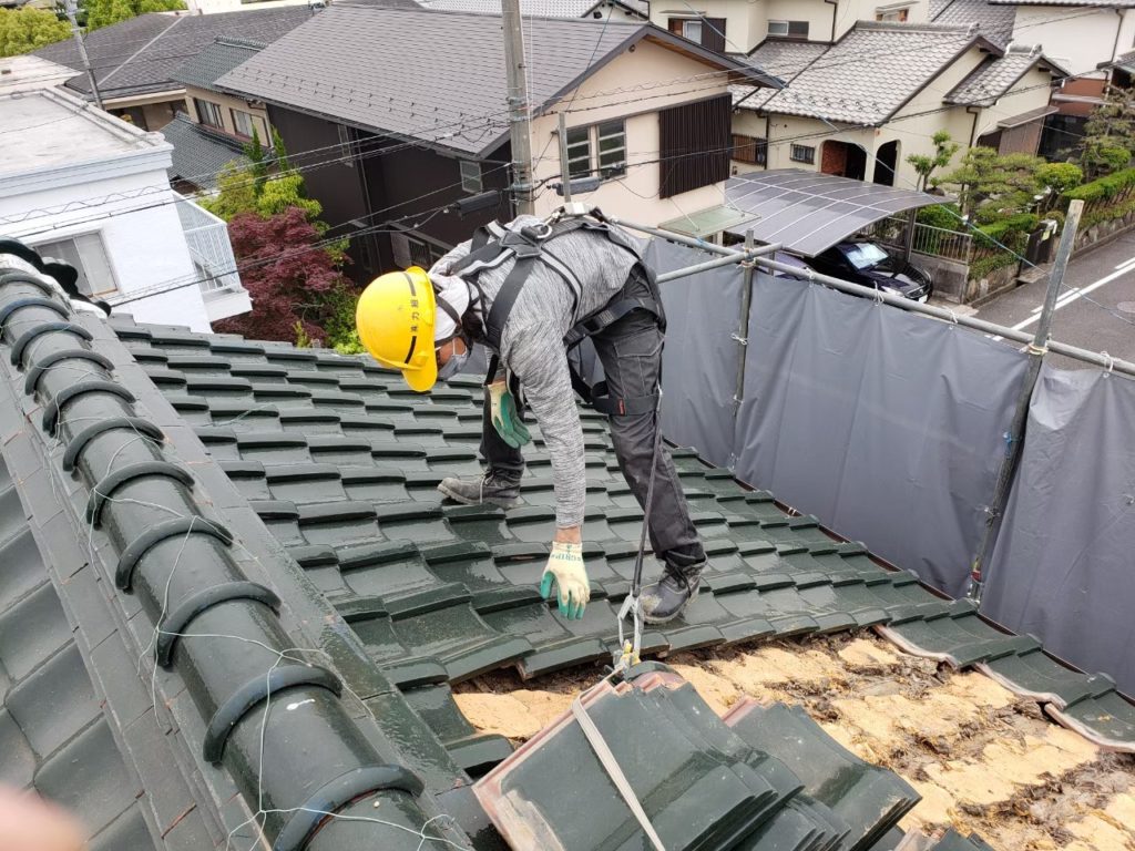 瓦、ガラス、畳、建具などを、手作業で撤去していきます。