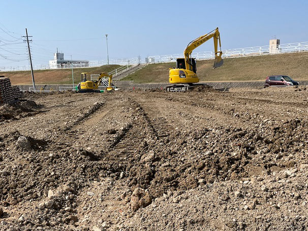 解体終了後、コンクリートくずなどのかけらを手で拾い集めながら地面を平らに整地し、工事完了です。