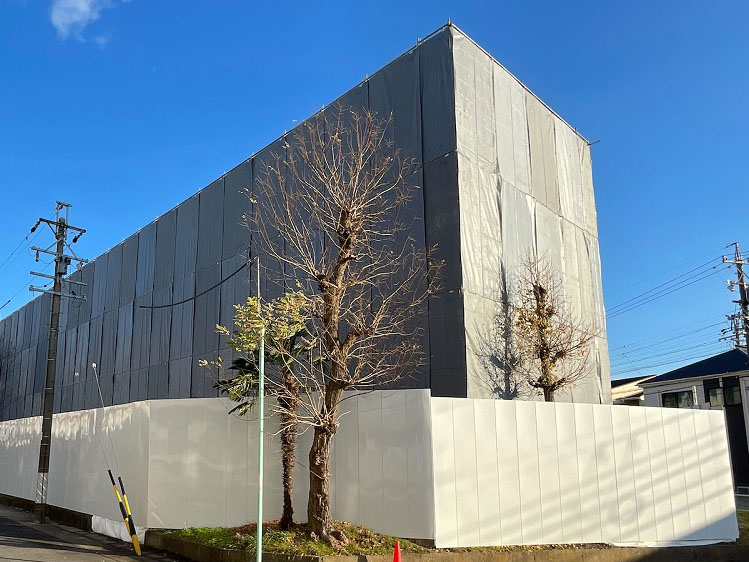 騒音やホコリを防ぐなど、近隣の方へのご迷惑を最小限にするため、足場を組み、養生シートを被せます。