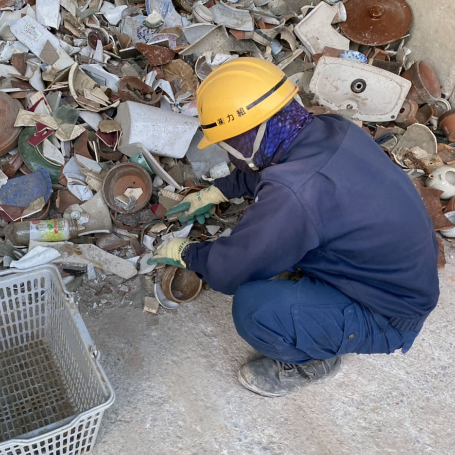 有価物、リサイクルできるもの、廃棄物(リサイクル不可)に選別します